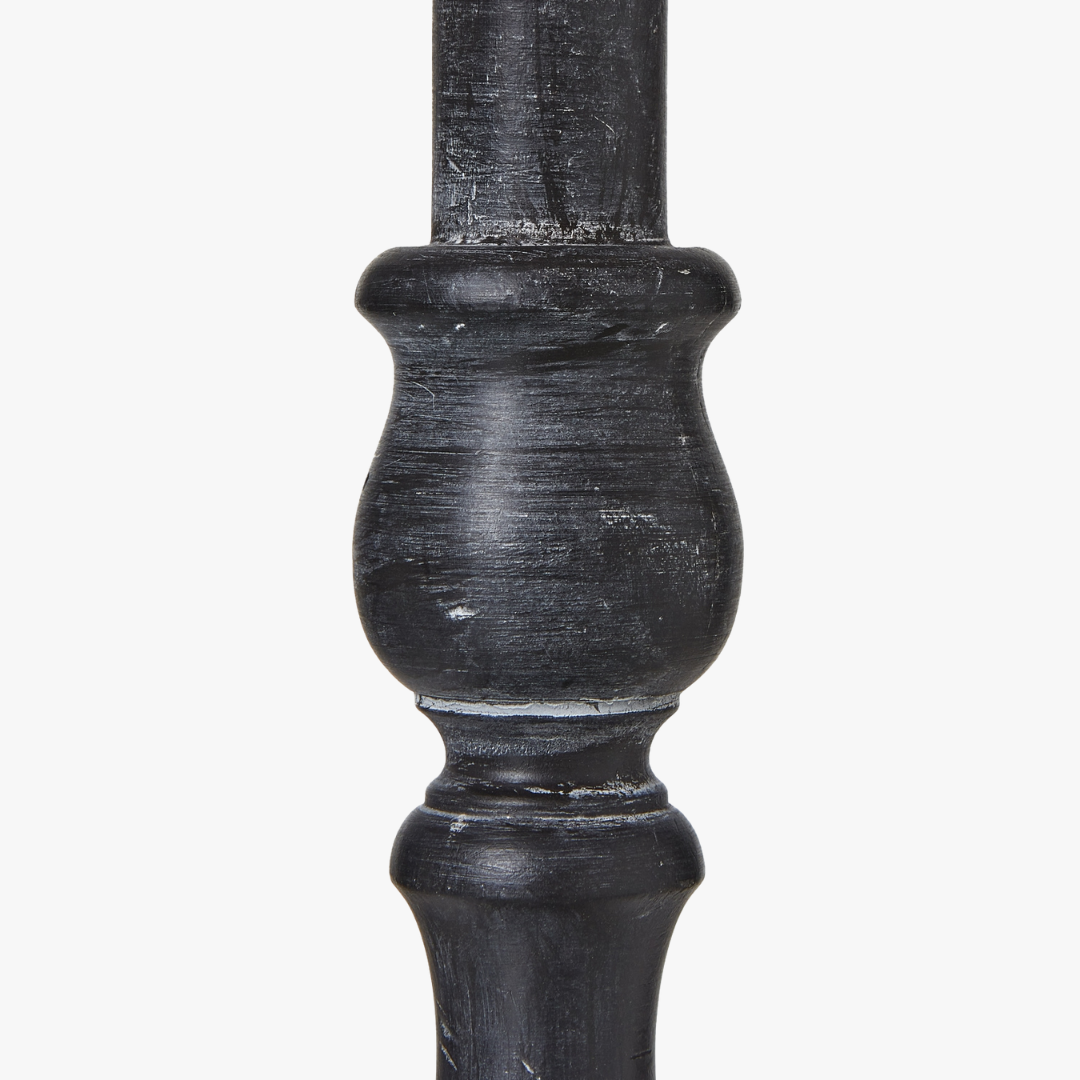The Ravenna Column Table Lamp with Linen Shade is a timeless piece that seamlessly blends rustic charm and sophisticated elegance. The intricate detailing of the distressed black base, with its intricate contours and textured finish, creates a captivating focal point in any room. The neutral linen shade adds a touch of understated sophistication, complementing a variety of interior styles, from farmhouse to modern industrial.